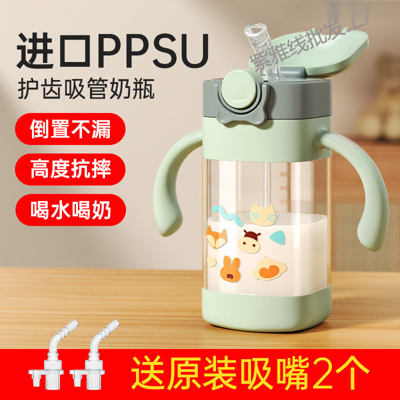 子供が牛乳や水を飲むための落下防止ボトル、大きな赤ちゃんが学ぶためのストローカップ、ストレートドリンクカップ、ポータブルデザインの飲料水バッチ