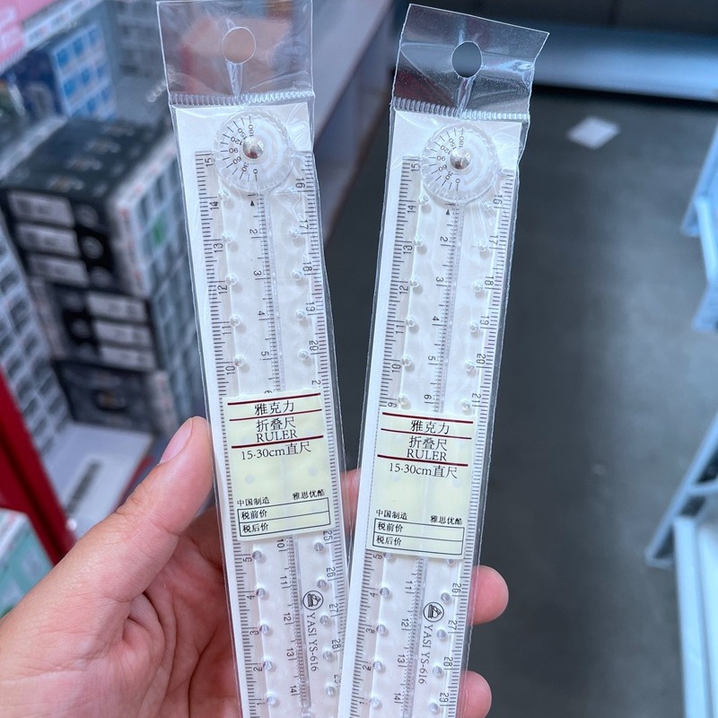 亚克力透明折叠尺直尺量角器简约刻度尺塑料尺学生绘图尺子YS-616