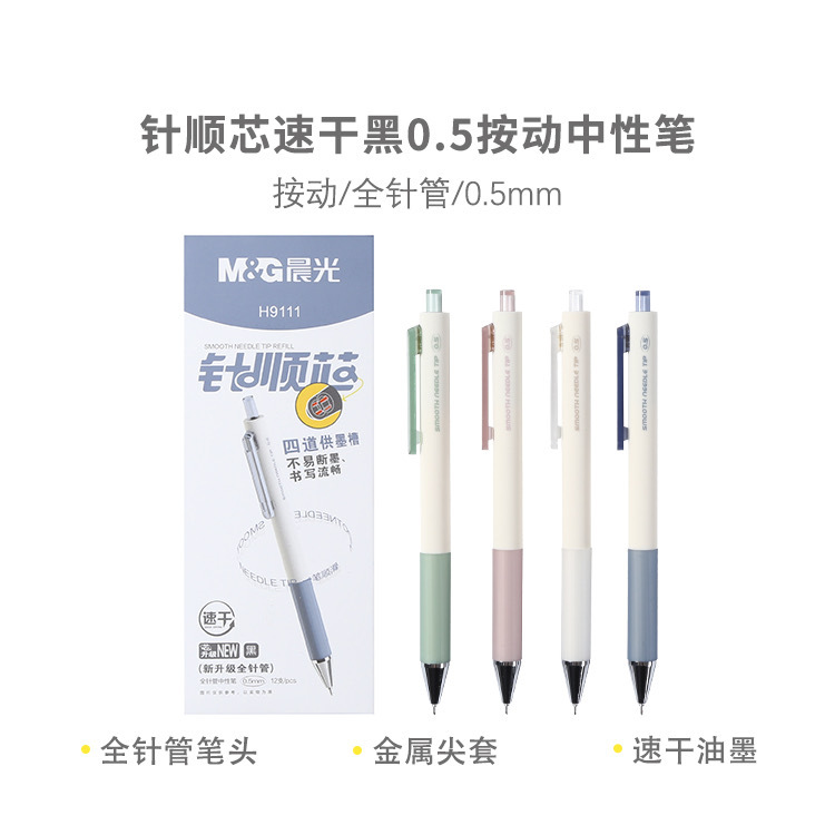 新製品晨光針スムーズプレスフルニードルチューブゲルペンヘッド速乾性インク金属チップカバー 0.5 ミリメートル