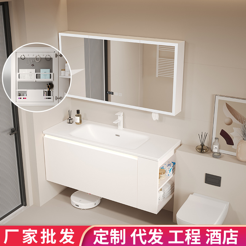 化粧鏡浴室キャビネット肌感一体盆浴室キャビネットセラミック一体洗面器洗面器浴室キャビネットメーカー
