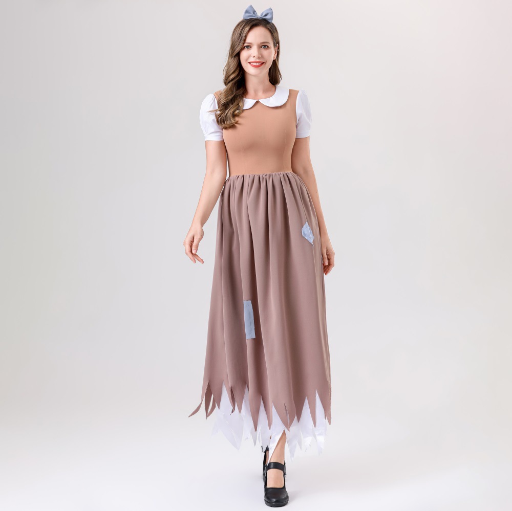 ハロウィーンのメイドのワンピース欧米の白雪姫の布の服装のワンピースの庶民の貧しい人の舞台の演出服