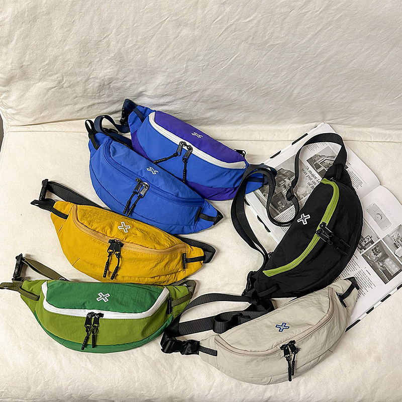 韓国スタイルのアウトドアスポーツナイロン子供用チェストバッグ 2025 新しいコントラストカラー軽量登山クロスボディバッグ卸売