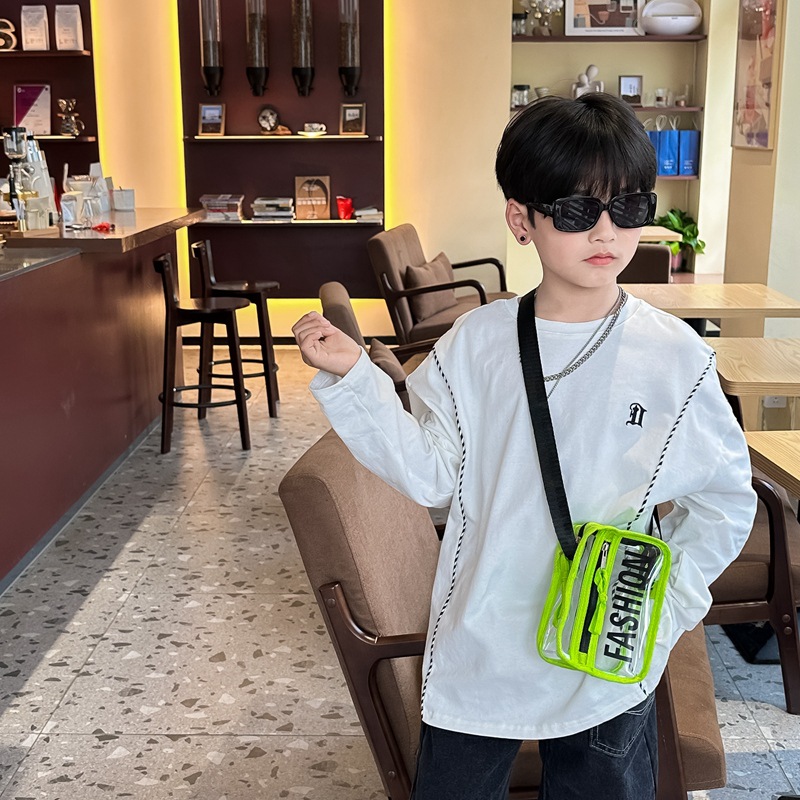 透明な子供のゼリーの包みの2024新型のかっこいい幼稚園の男の子は斜めに小さい包みの潮のクールな春の旅行のリュックサックを掛けます。