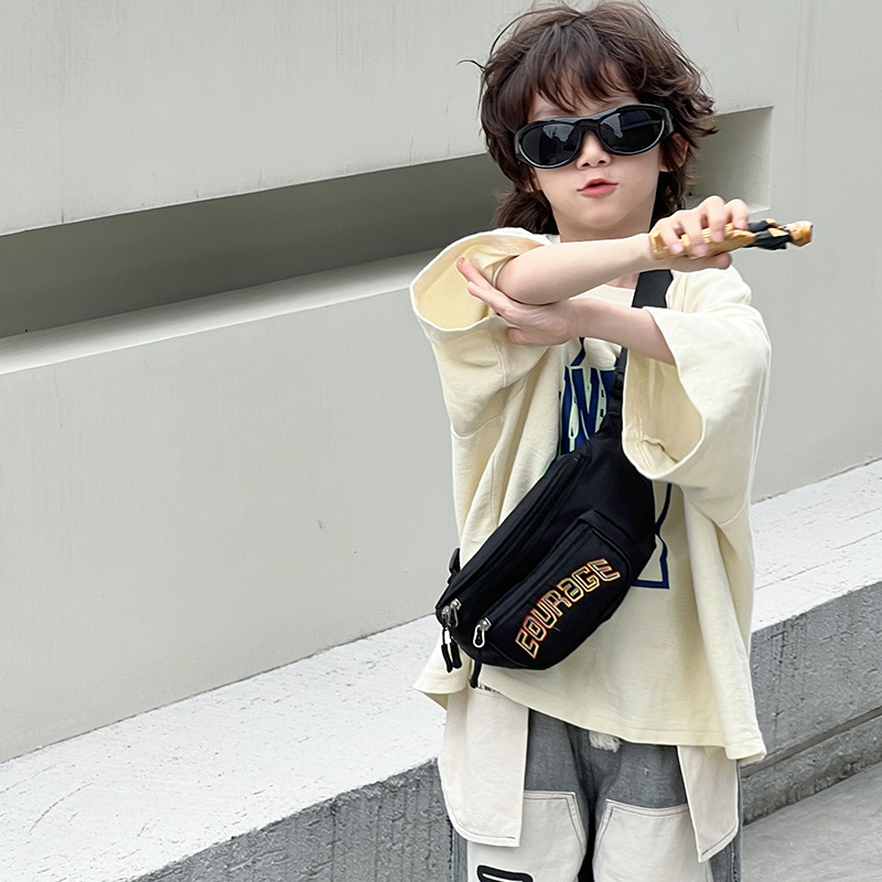潮酷男児小胸包2024夏新幼稚園児童斜め掛け小包刺繍アルファベット洋気百合