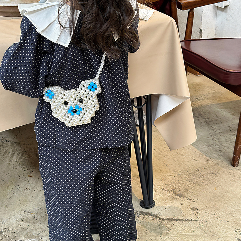 かわいい女の子の熊真珠編みバッグ2024夏の新しい子供のビーズの斜めのショルダーバッグのミニ大衆の組み合わせ