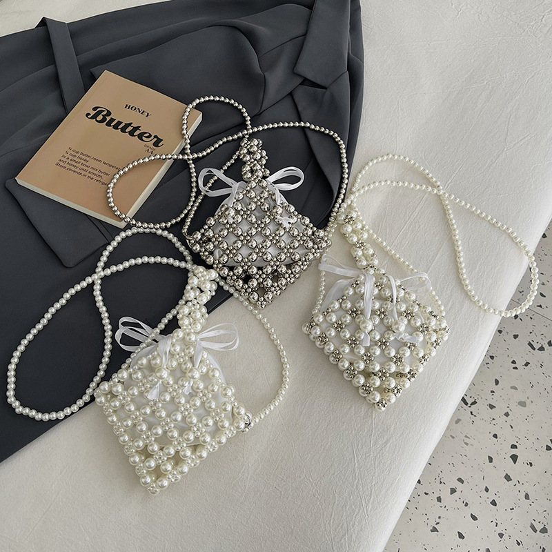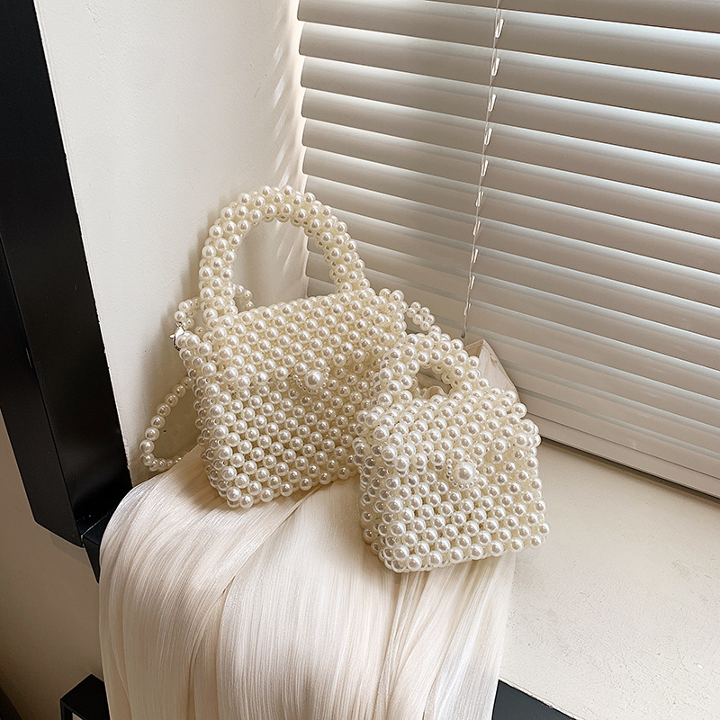 アンドロメダバッグ新2023夏森系少女ハンドバッグinsネット赤シングル肩斜め掛け真珠編みバッグ