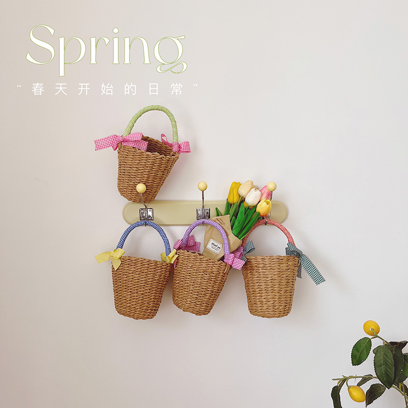 草編み春遊小包子供が小さな花かごを持ってかわいい女の子が外出して2024夏のビーチバッグを編む