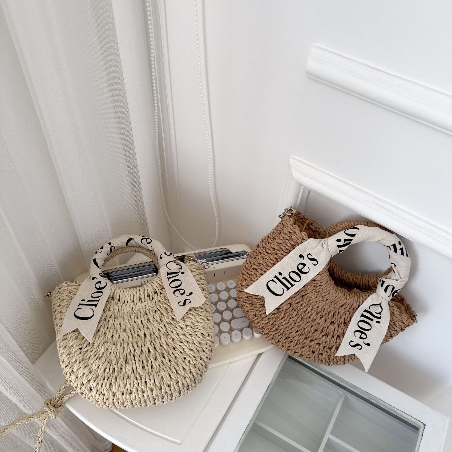 2024春夏新作編み草編みバッグ女の子カバン洋気可愛い赤ちゃんハンドバッグ斜め掛けショルダーバッグ