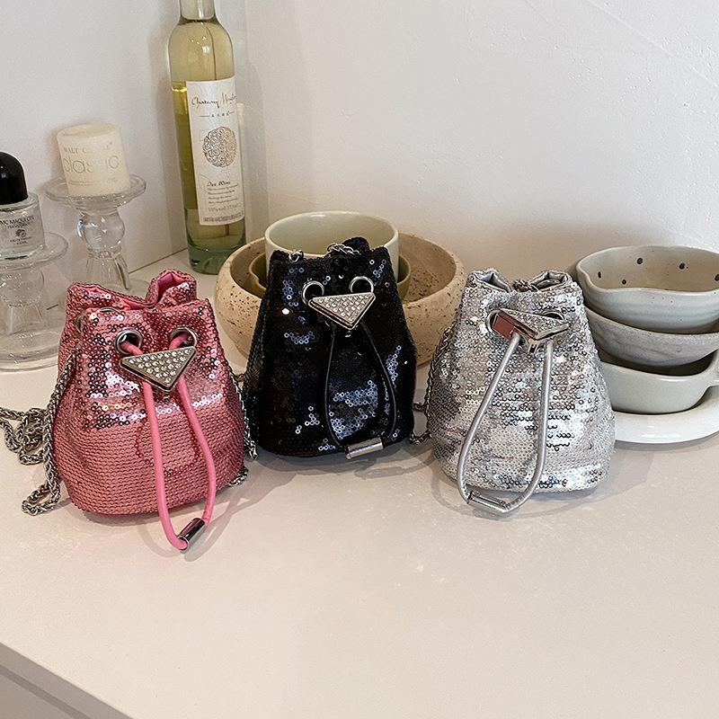 2024春夏スパンコールバケツバッグ子供斜めがけショルダーバッグ可愛い女の子ファッションコーデ高級感お出かけポーチ