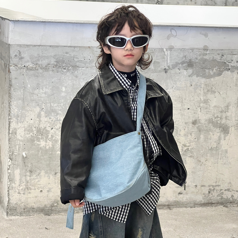 2024春のファッションのクールな男の子のショルダーバッグのデニムのシンプルな風のカジュアルな大容量のかっこいい子供の斜め掛けのカバン