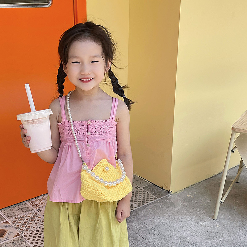 真珠の子供のカバンのファッションの洋風の百合のミニの手提げのバケツの包みの女の子のネットの赤い斜めのショルダーの装飾の包みの楊梅
