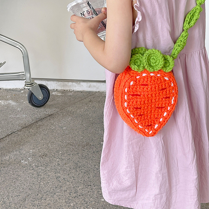 2023新品ガールズニット毛糸カバンいちご手作り编み洋気可爱い小さいカバンお出かけ小銭入れ