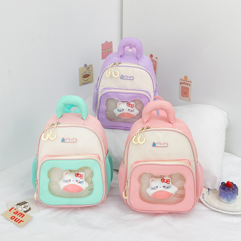 2025新型子供リュックサック韓国版かわいい猫のリュックサックの中の大きいクラスの幼稚園は春の旅行のカバンに出かけます。
