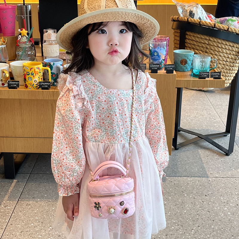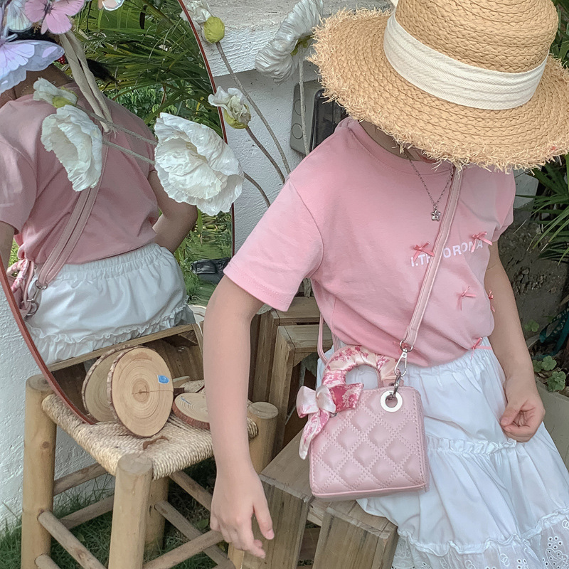 小香風かわいい女の子のショルダーバッグ2024新洋風シルクタオル菱格高級感子供のショルダーバッグ