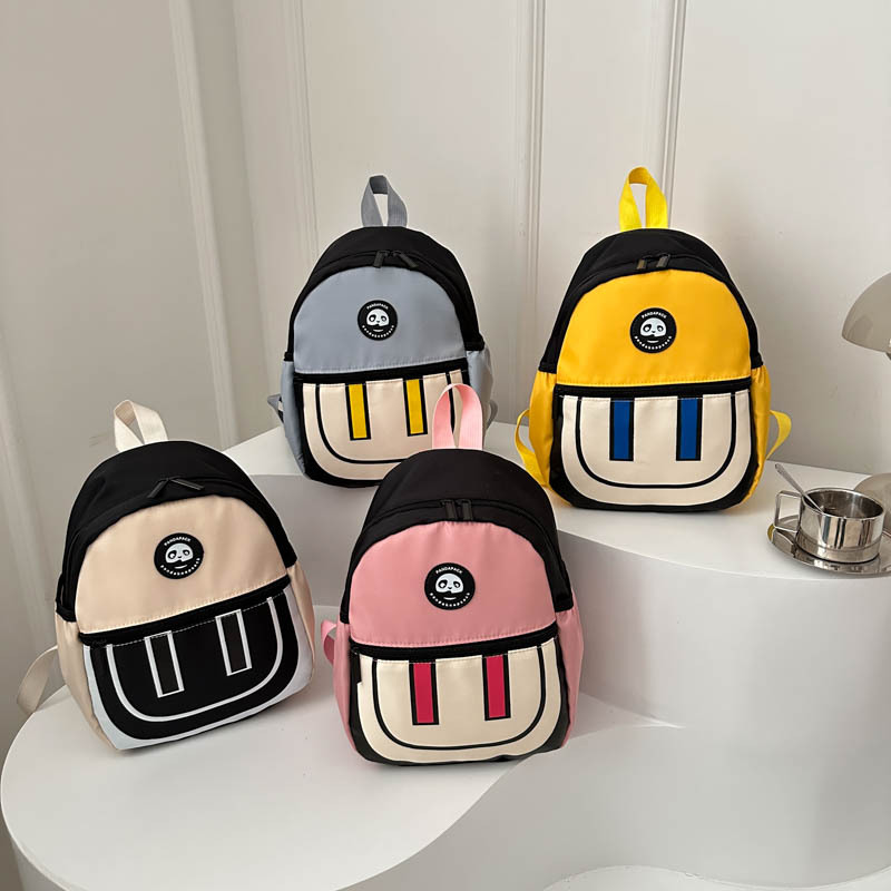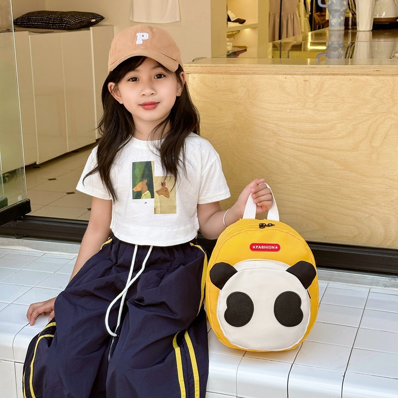 かわいいパンダのランドセル幼稚園の赤ちゃんがリュックサックに出かけます。