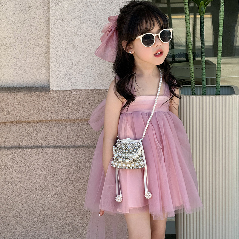 高级感パールキッズハンドバッグ2024夏新品可爱い女の子お出かけビーズ斜めがけショルダーバッグ洋风おしゃれ