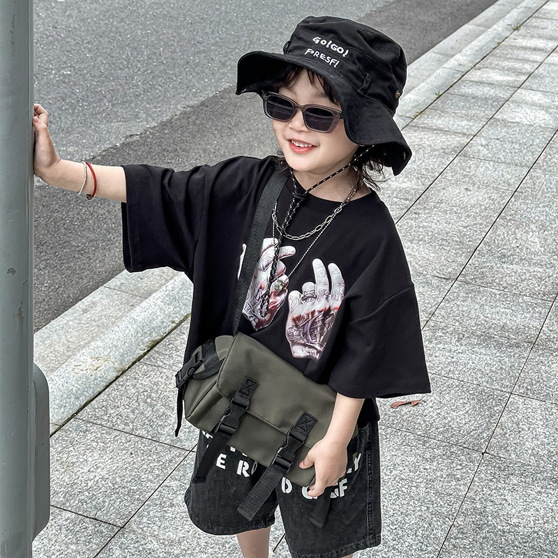 トレンディでクールな小さな男の子クロスボディバッグ2025夏の新しいスタイル外国スタイル多用途子供用バックパックカジュアル日本のメッセンジャーバッグ