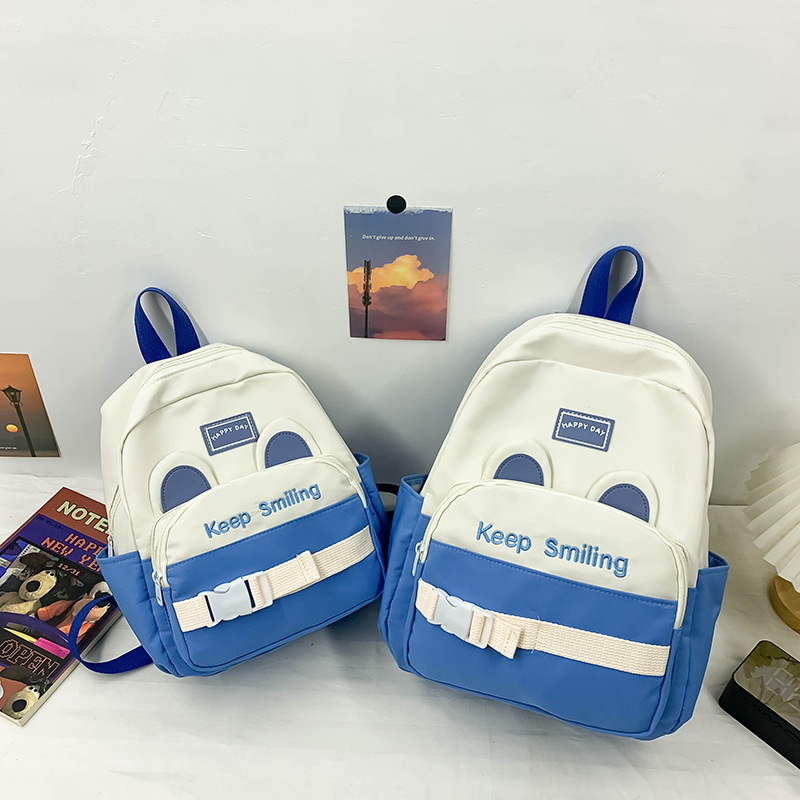 幼稚園のリュックサックは色にぶつかっています。