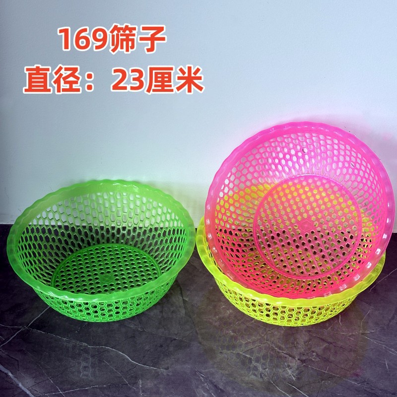 全 169m ふるい丸型厚みのあるカラフルな野菜洗いバスケット中空大きな目のプラスチックバスケット 1 元 2 元ショップ供給