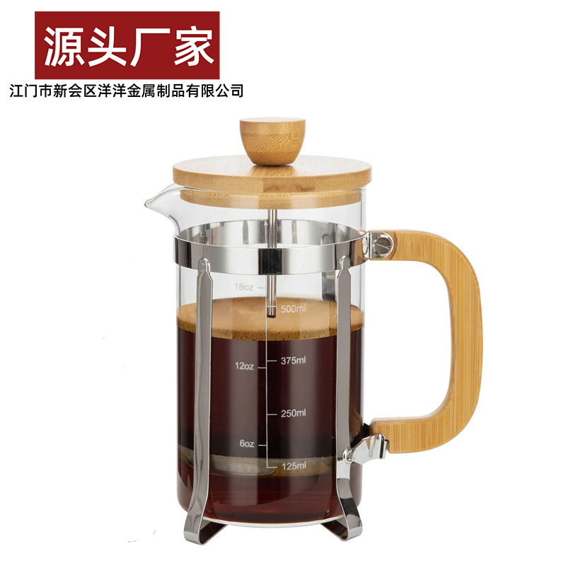 ガラスフレンチプレスポット木製蓋高ホウケイ酸ガラスコーヒーポット家庭用キッチンフィルタープレスポットティーコーヒー器具