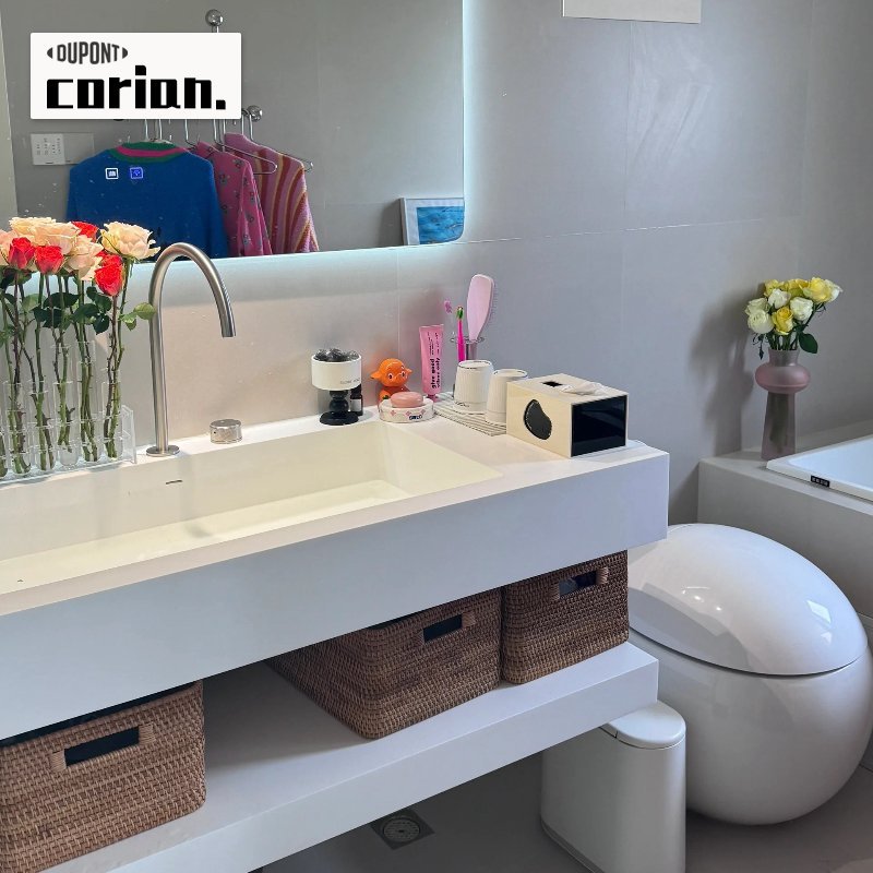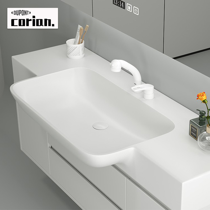 2025 新しい Corian オールインワン角型洗面器シングルカウンタートップ浴室洗面台洗面台浴室カウンタートップ