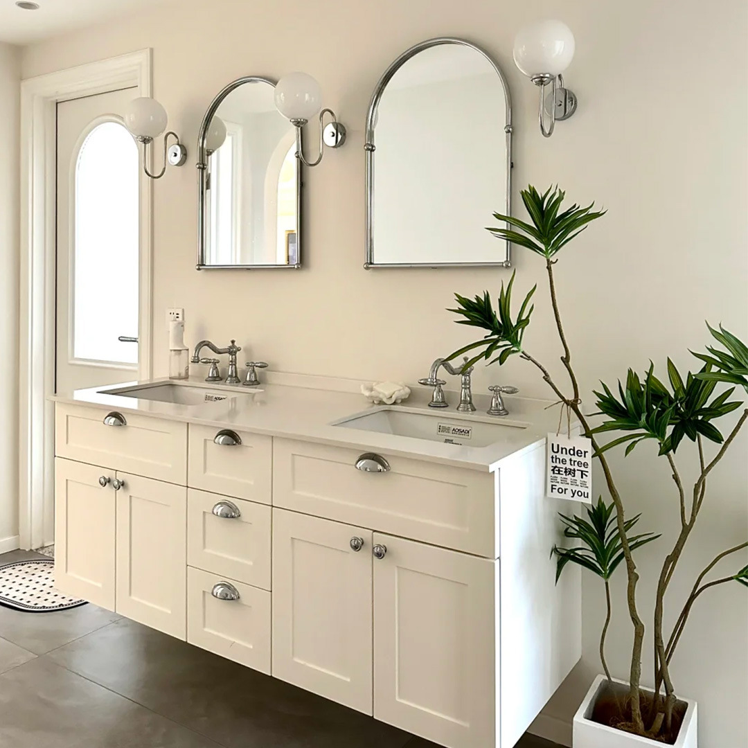 大型ダブル洗面台オークフレンチフロアレトロバスルームキャビネットコンビネーションバスルームシンク洗面台キャビネット