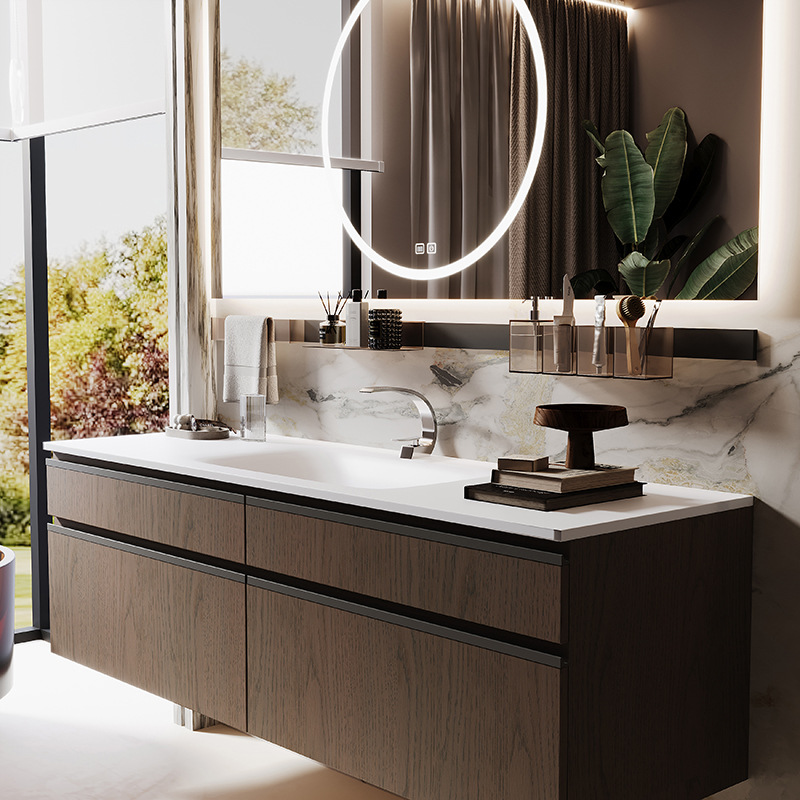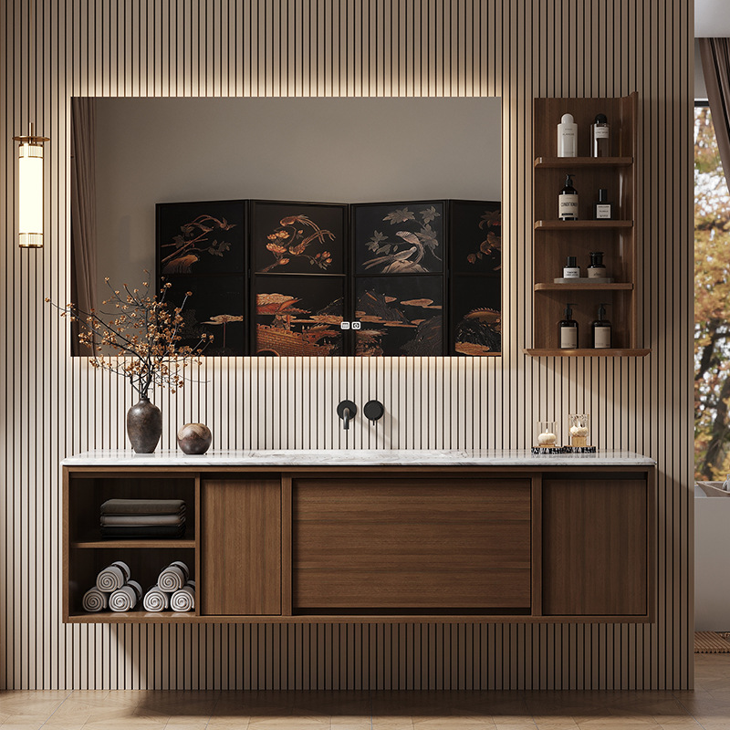 2024新型軽豪華可丽耐岩板セラミックス一体盆浴室キャビネットトイレオーク材塗装棚
