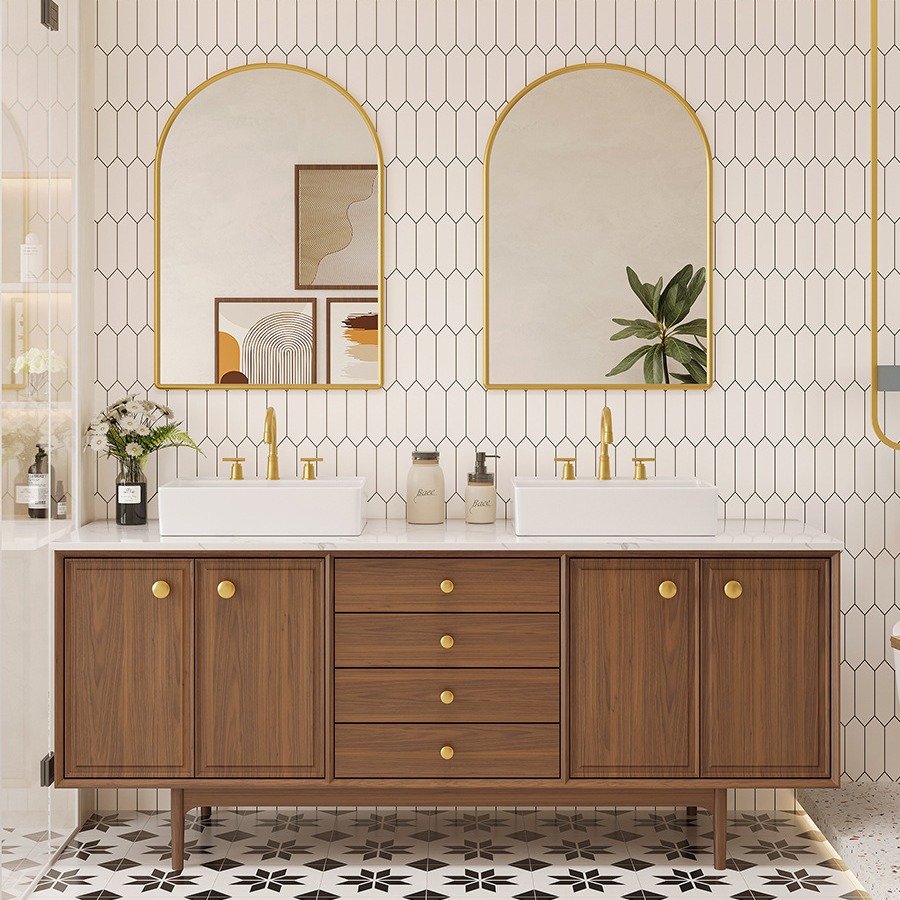 原木風現代可丽耐陶磁器台上盆浴室キャビネットセットシンプルクラシックオーク二人浴室キャビネット