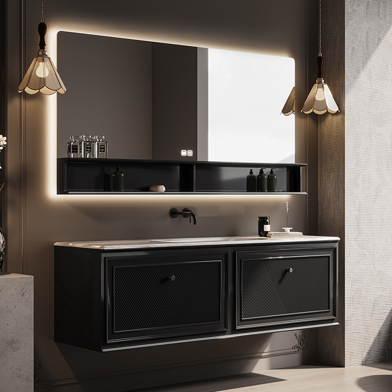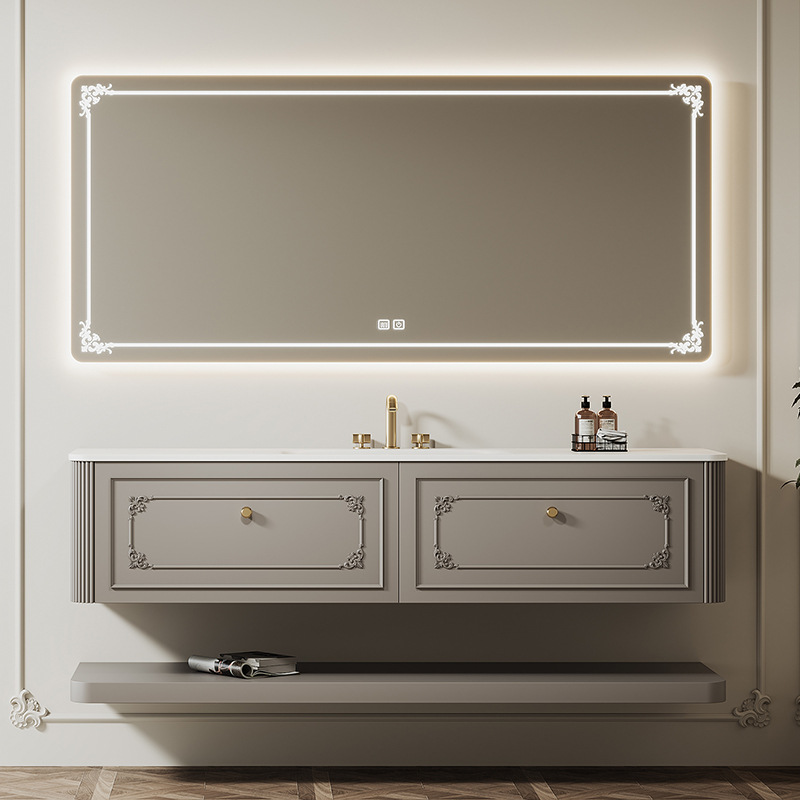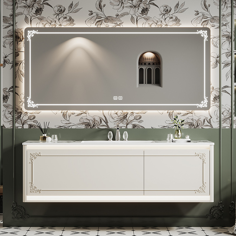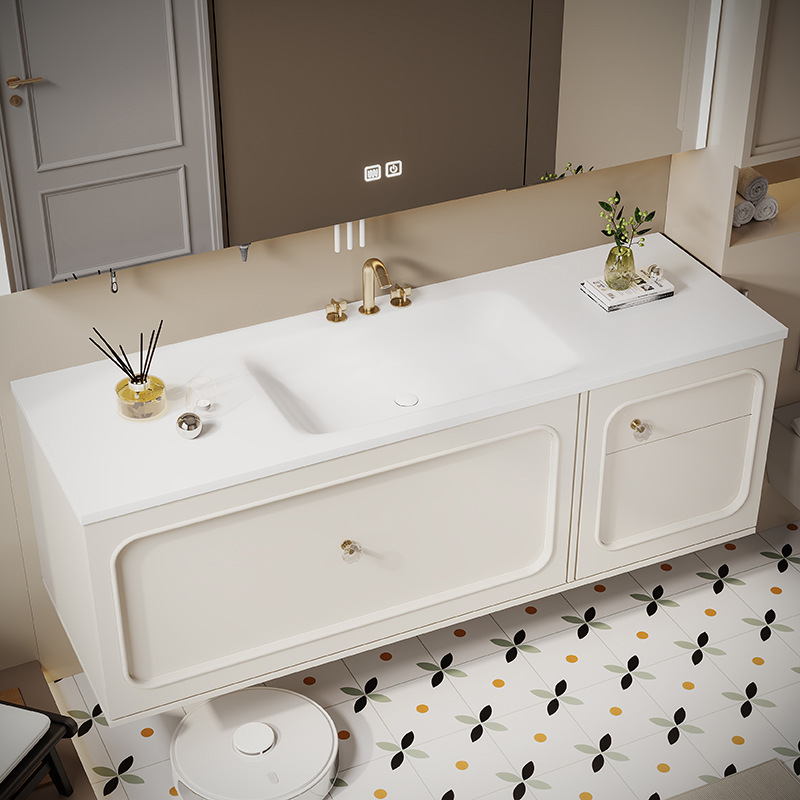 クリーム風フランス式浴室キャビネットセット岩板熱曲げ一体盆オークスマート洗面台手洗い洗面器レトロ