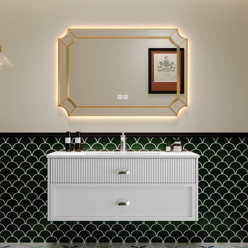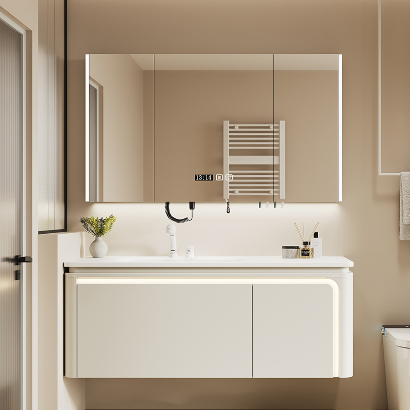高定フランスクリーム風浴室キャビネットセット岩板熱曲げ一体盆スマートトイレ洗面台洗面台洗面台