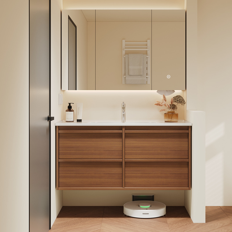 骨格線フランスオーク材実木浴室キャビネットセラミック一体型洗面台洗面台トイレ2024新型