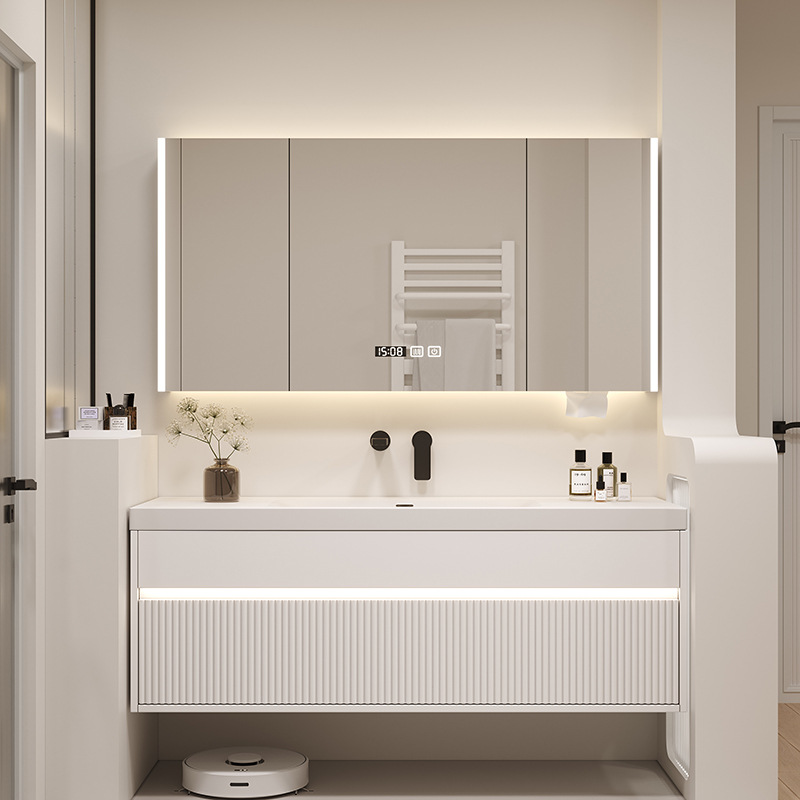 掃除ロボットデュポン可丽耐一体盆浴室キャビネットセットオーク材塗装クリーム風知能洗面台