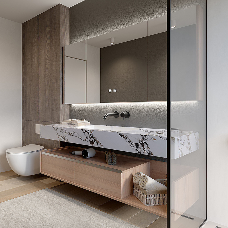 2024新型岩板熱曲げ一体盆浴室キャビネットセットトイレ佛山洗面台洗面器顔