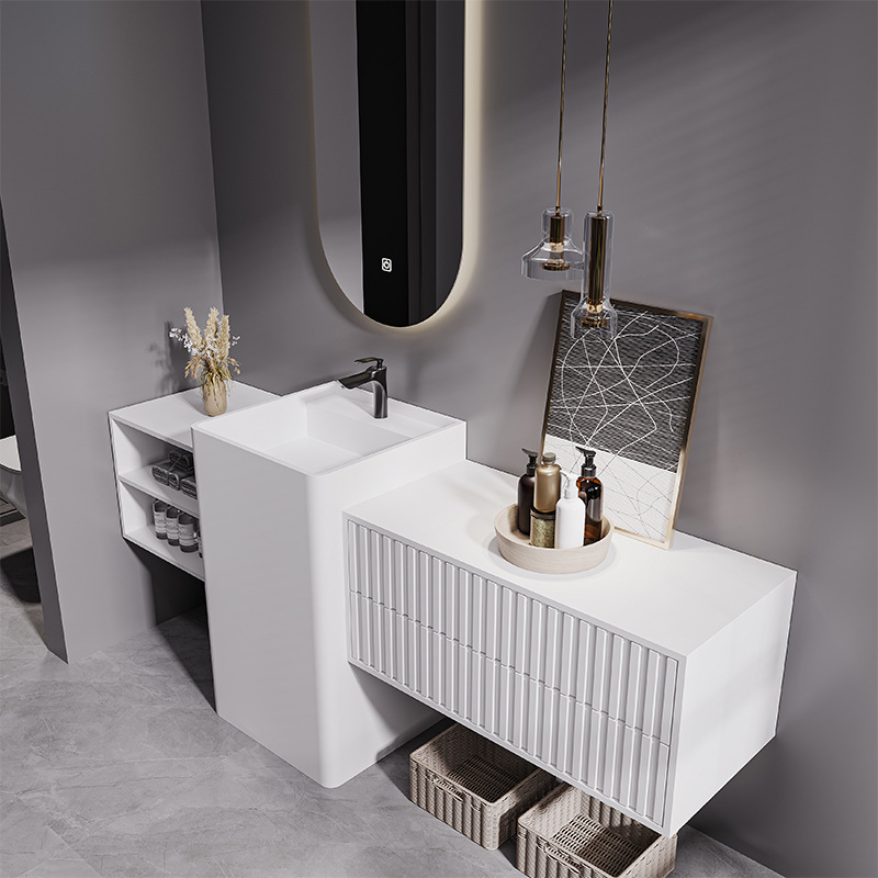 デュポン可丽耐一体盆浴室キャビネットセットクリーム風洗面台手洗い洗面キャビネット角サイド収納