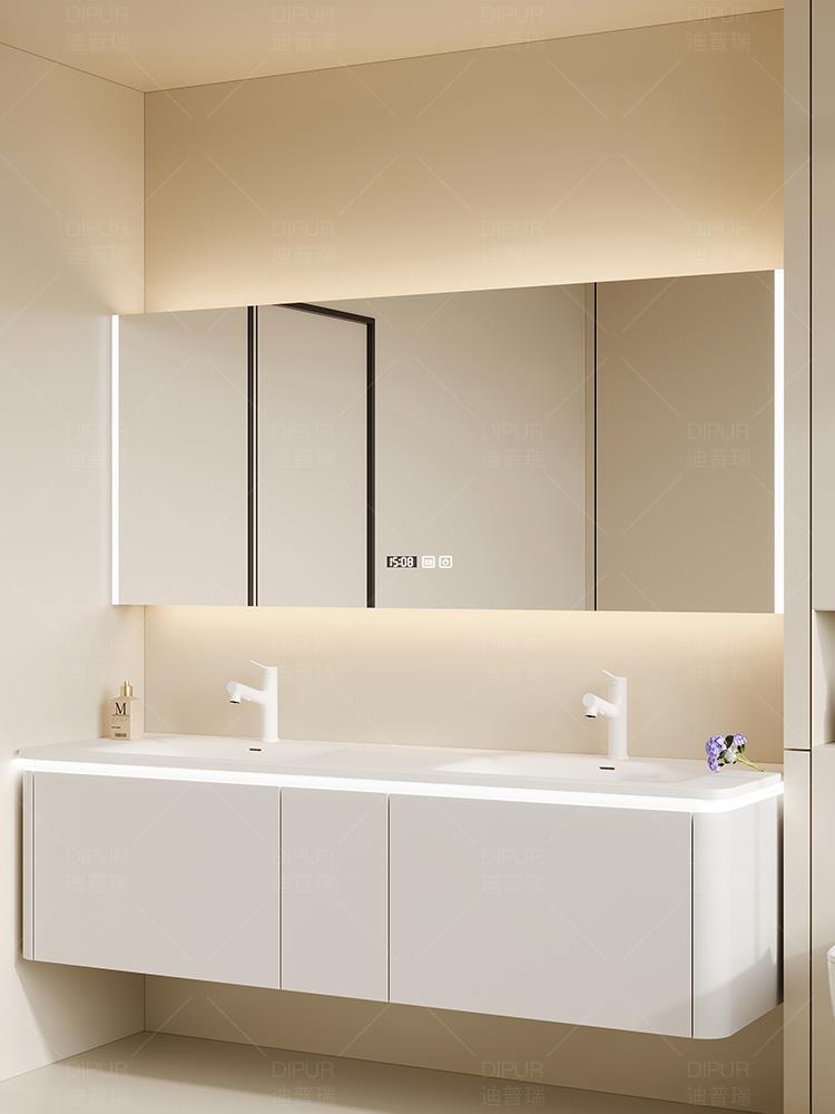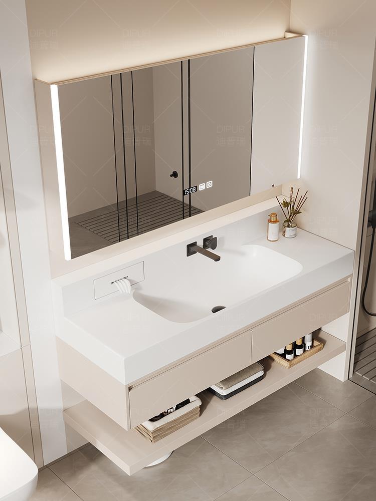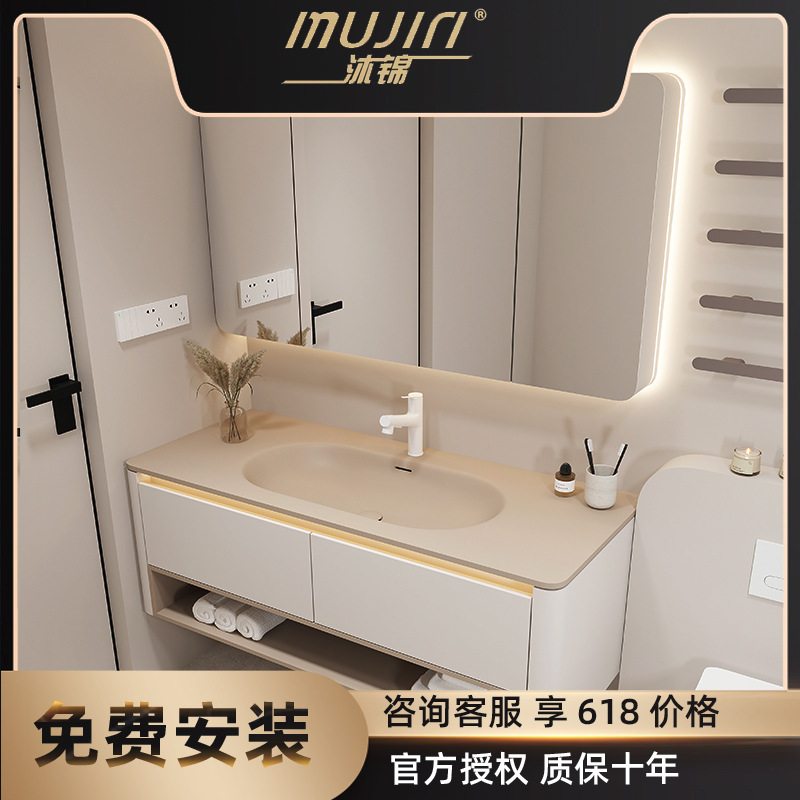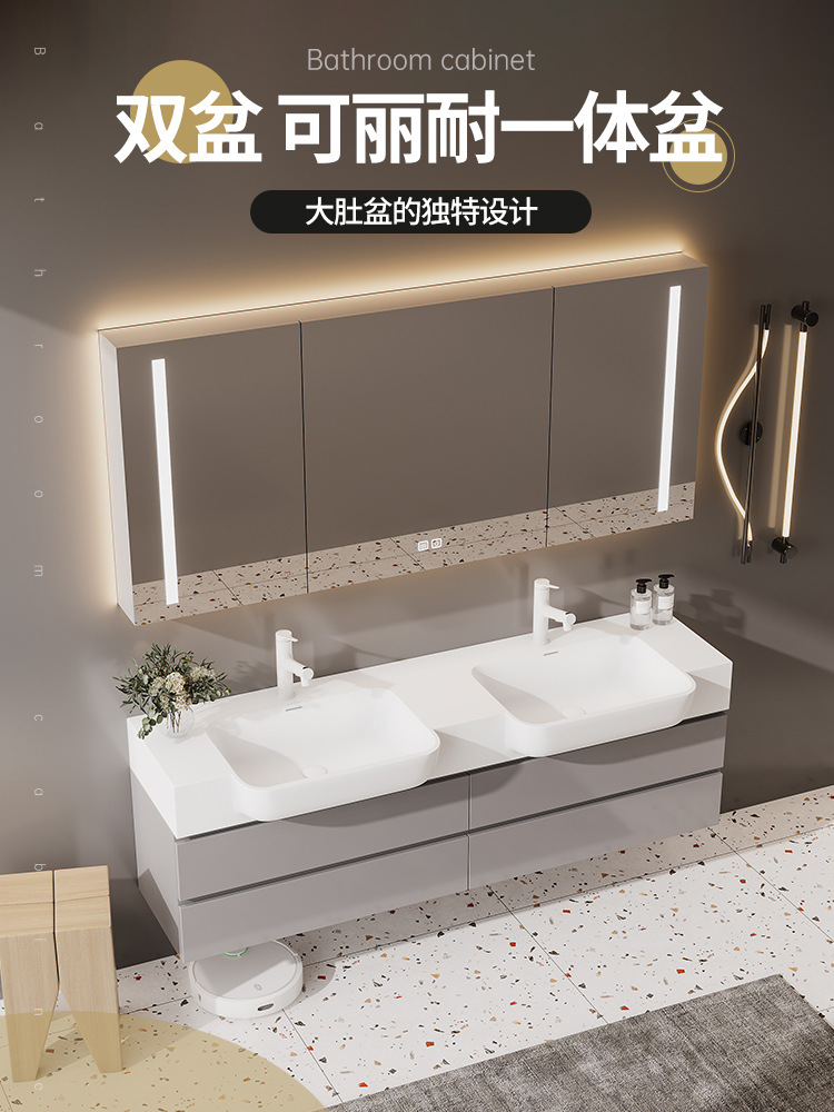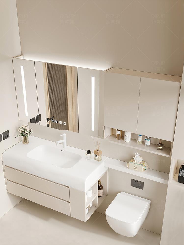 肌感可丽耐一体双盆浴室セットキャビネットクリーム風岩板セラミック洗面器トイレ洗面台
