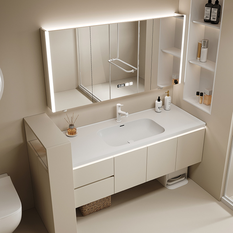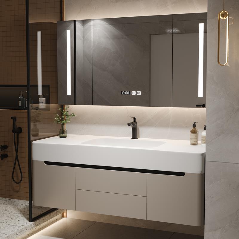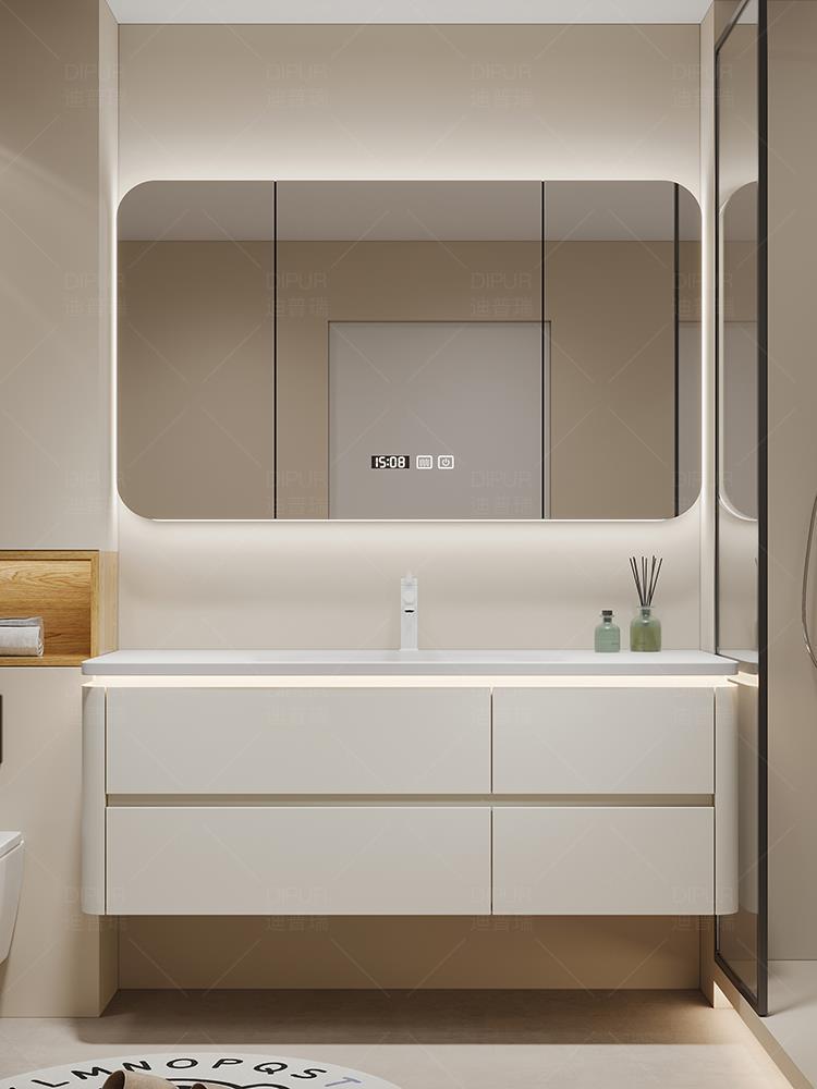 輸入デュポン可丽耐一体盆浴室キャビネットセットオーク材焼付クリーム風スマート洗面台洗面台