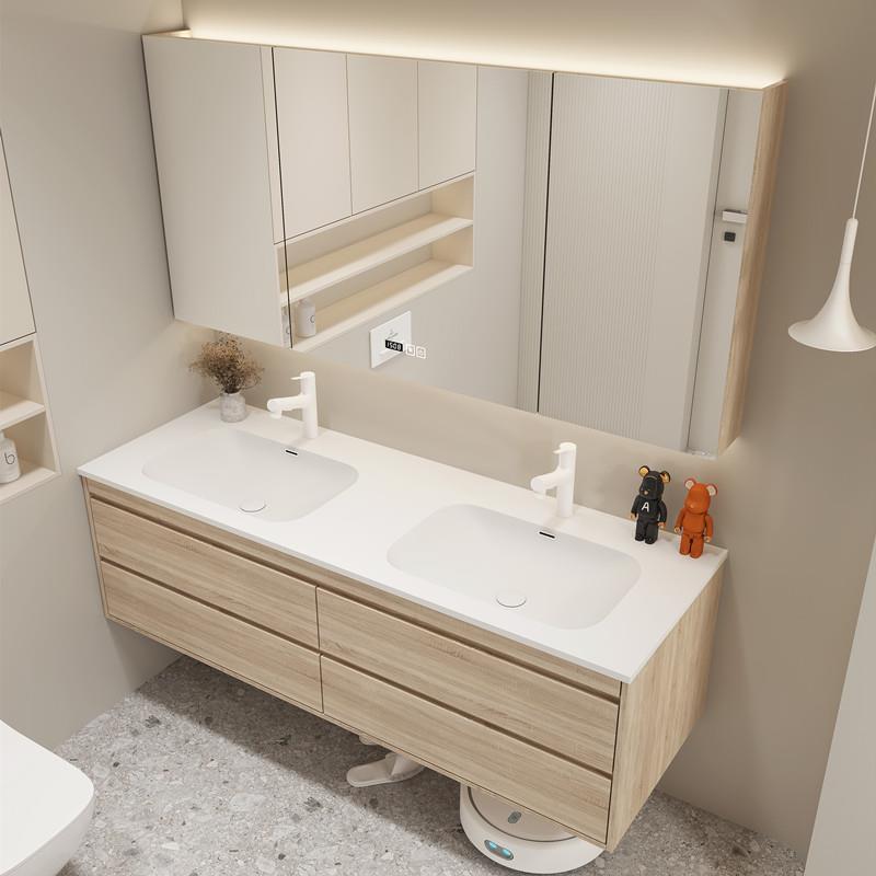 アメリカデュポン可丽耐一体双盆浴室キャビネットセットオーク材塗装知能鏡洗面台手洗い洗面器