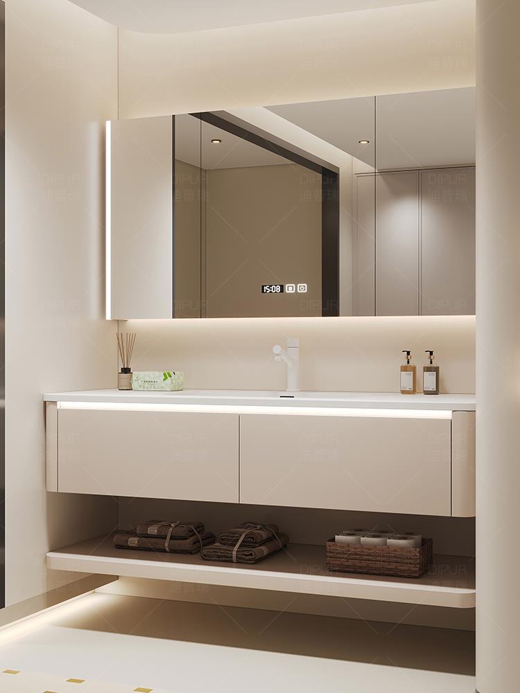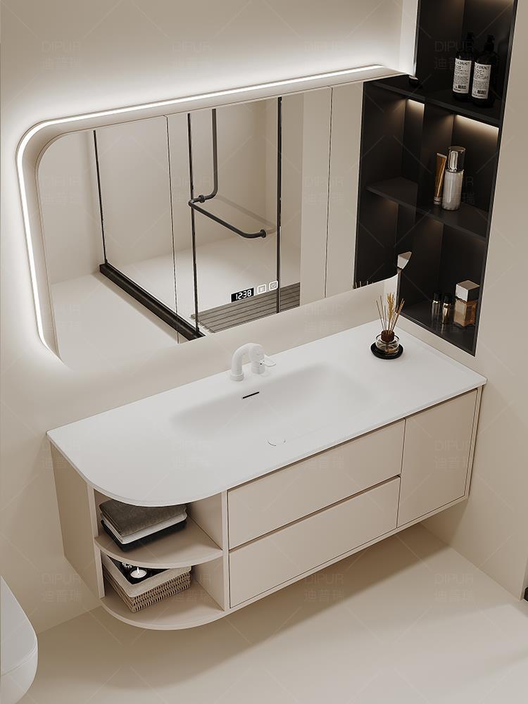 デュポン可丽耐一体盆浴室キャビネットクリーム風軽贅沢洗面台洗面台洗面器円弧新