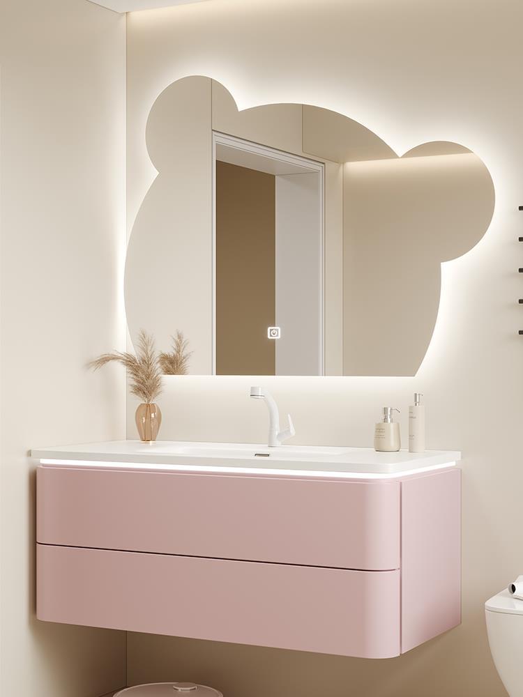 赤い本可丽耐一体盆浴室キャビネットオーク少女粉熊鏡知能ネット赤洗面台軽贅沢