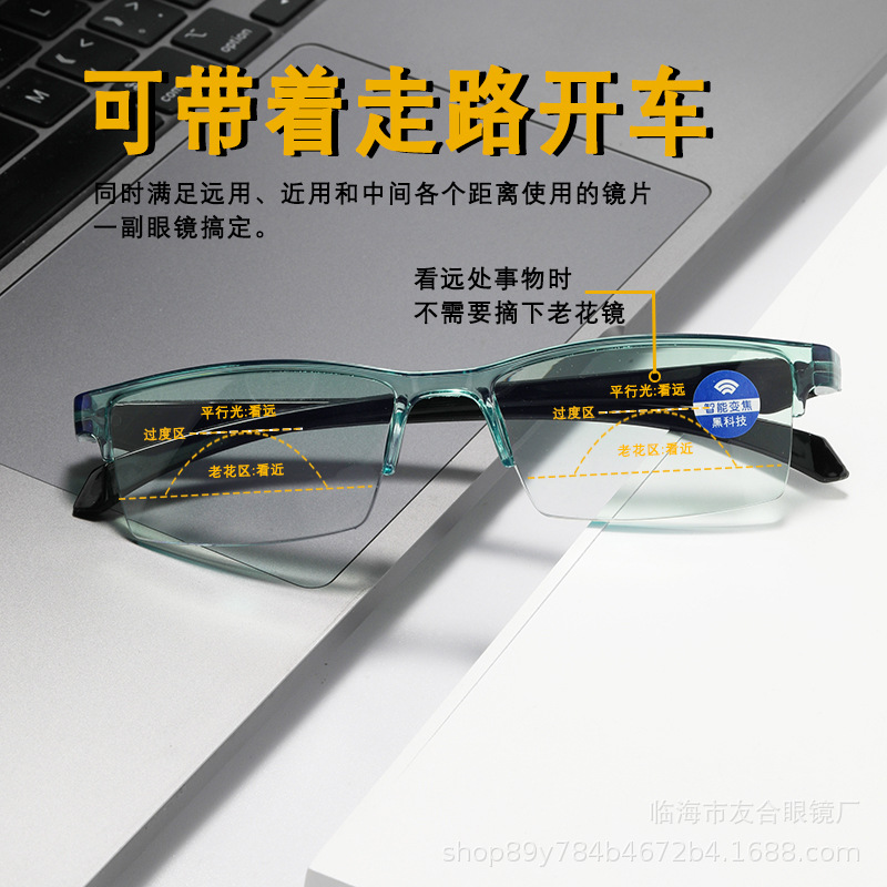 ファッショナブルな新しい抗ブルーライト老眼鏡フレームレス老眼鏡カットエッジ露店老眼鏡工場直販