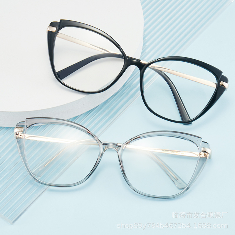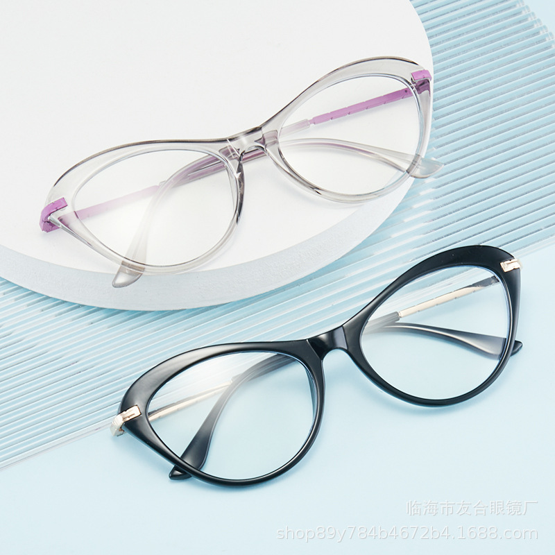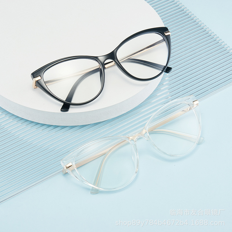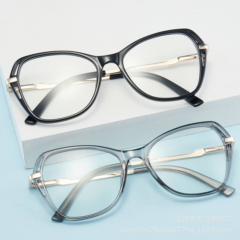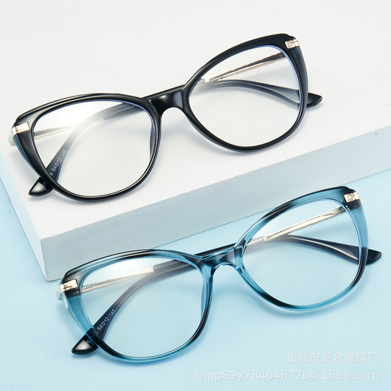 クロスボーダー新品tr90抗ブルーレイレンズレディースファッション猫目素顔フラットミラーバネ足近視眼鏡フレーム