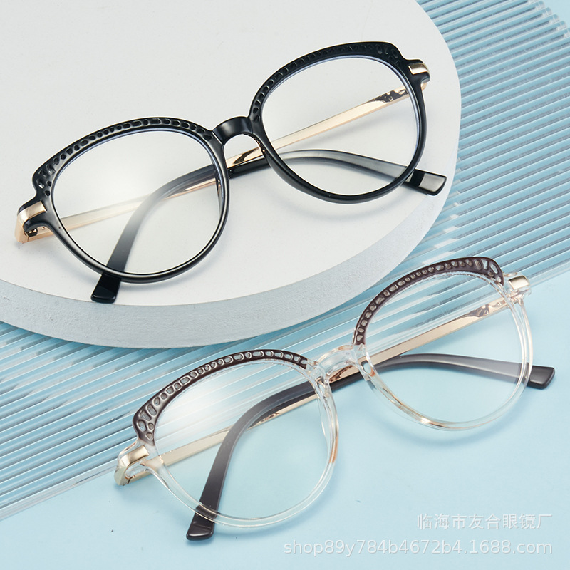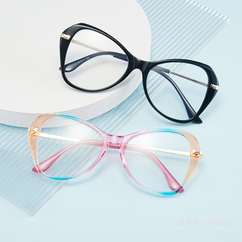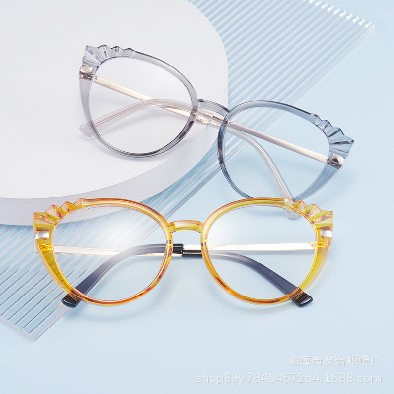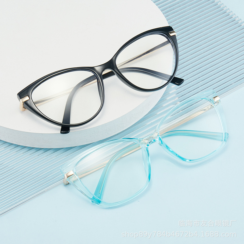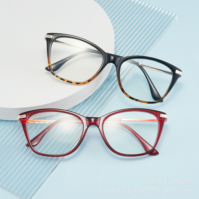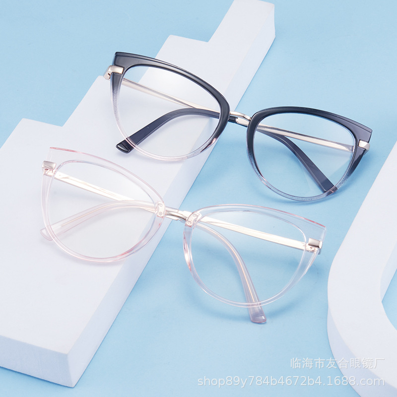 クロスボーダー新品tr90抗ブルーレイレンズレディースファッション猫目素顔フラットミラーバネ足近視眼鏡フレーム