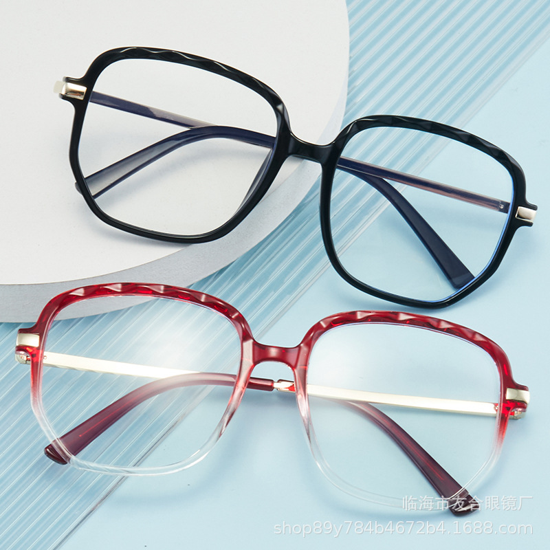 新型クロスボーダーtr90角枠男女フラットミラーメガネ枠レトロ防ブルーライト赤レトロ金属バネ足