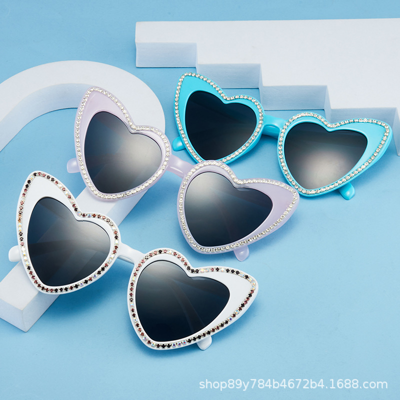 春季新款太阳镜欧美个性爱心玻璃镶钻眼镜高品质时尚百搭桃心墨镜