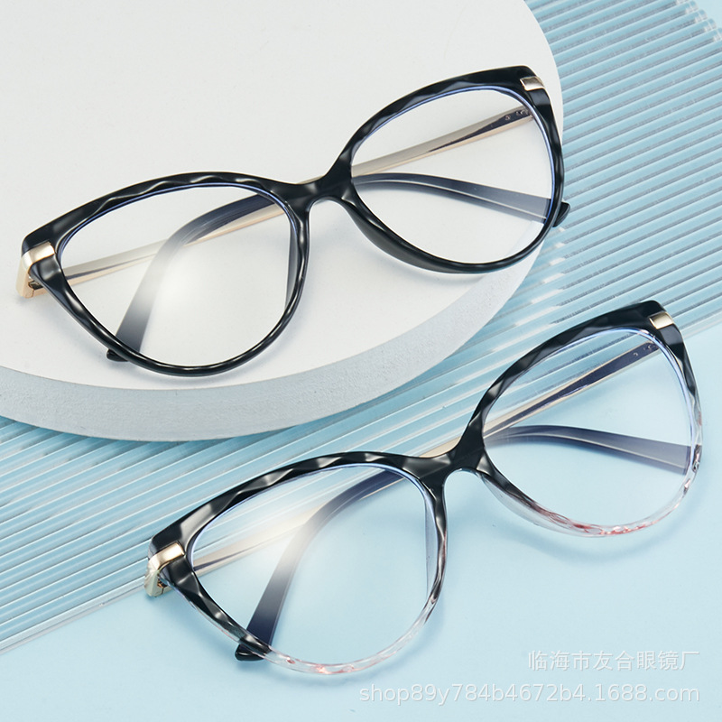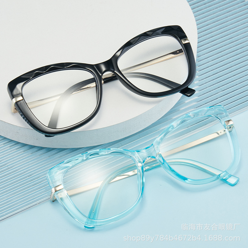 新款时尚防蓝光猫眼眼镜框欧美潮TR90弹簧腿平光镜复古配近视框架