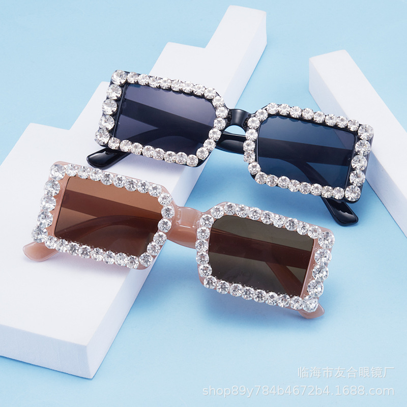 クロスボーダーレトロサングラス、ファッション模造ガラスダイヤモンド装飾サングラス、欧米風スモールスクエアフレームストリートスタイルサングラス、近視用サングラス
