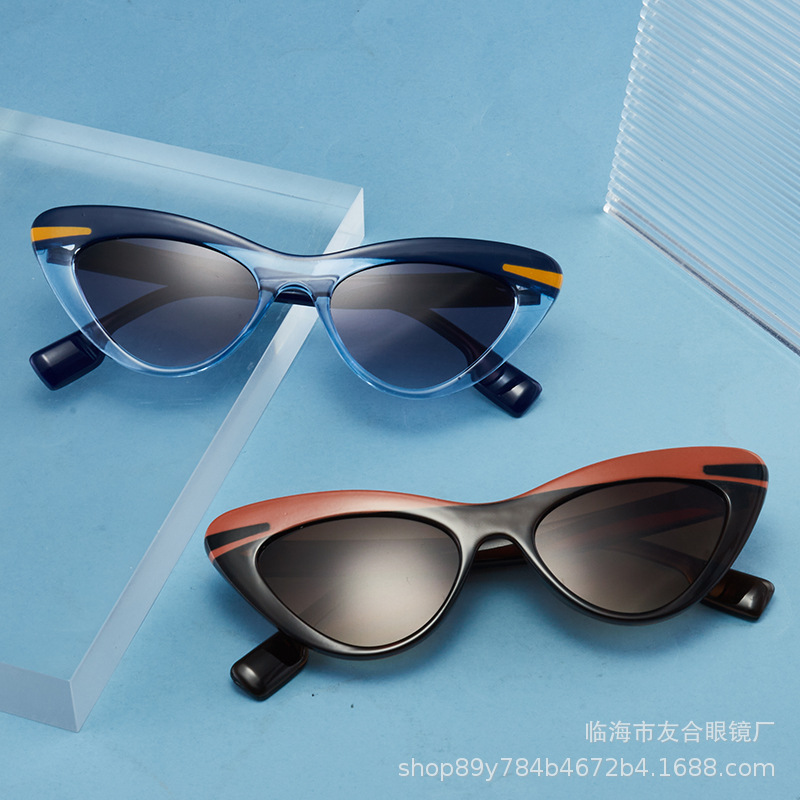 欧米のファッションサングラスの小さい枠の猫の目の赤い緑の眉の枠のサングラスの女性の透明な2色の復古の越境の日よけの眼鏡