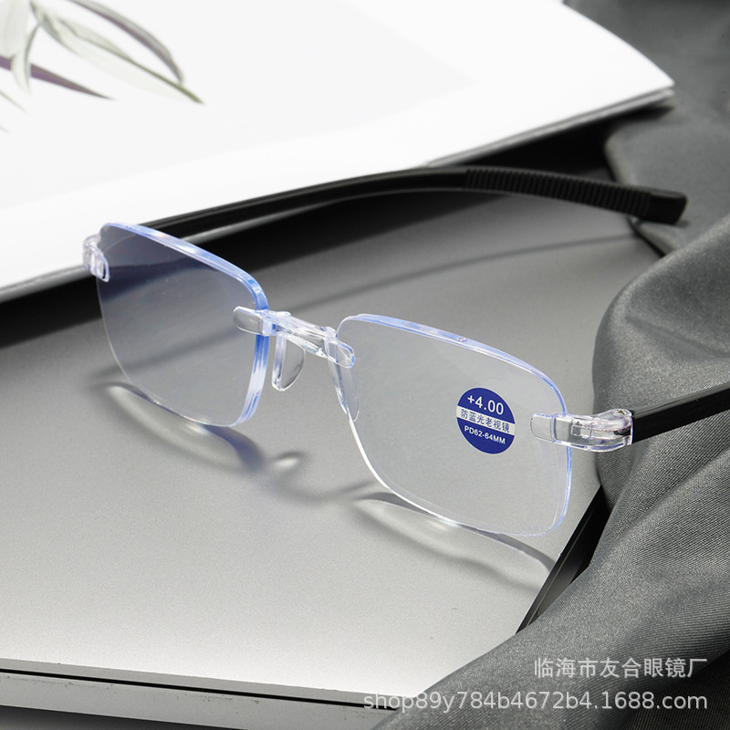 新商品のフレームなし老眼鏡卸売りブルーレイカット防止老眼鏡樹脂ハイビジョン老人読書メーカー直販