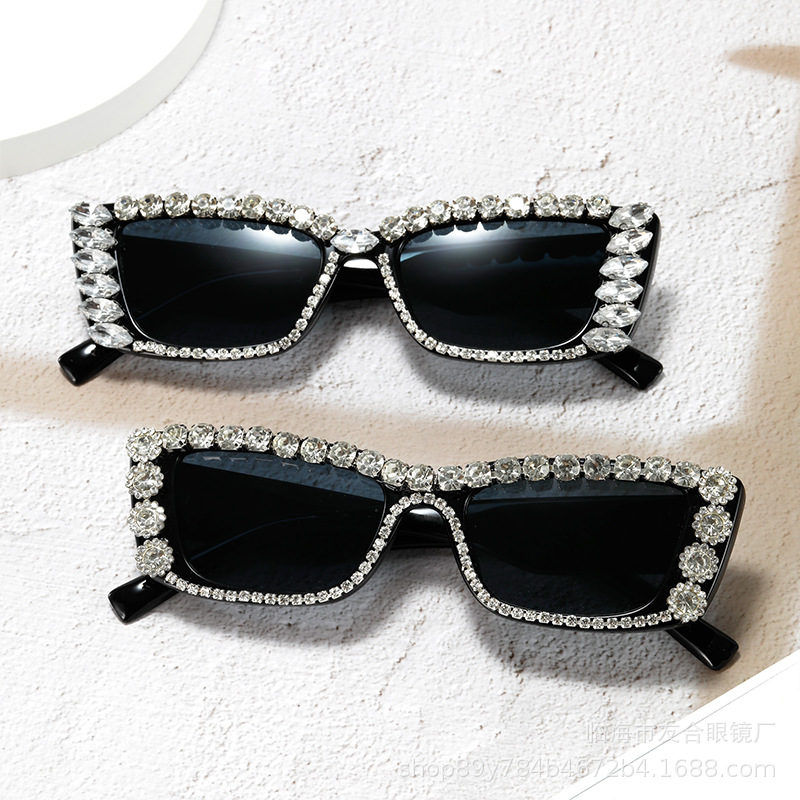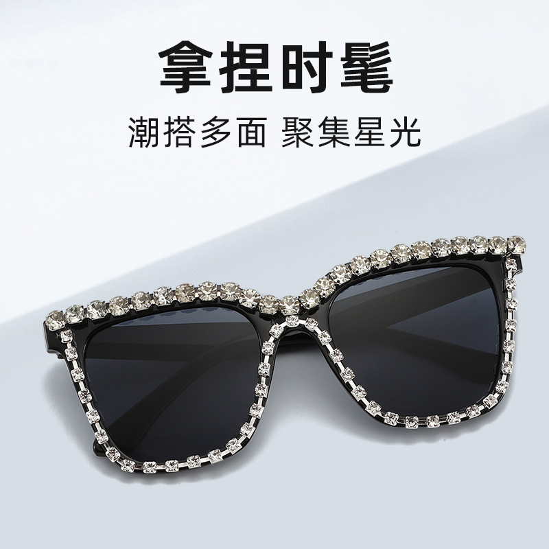 ヨーロッパとアメリカのファッションの新しいマルチカラーの大きなフレームのダイヤモンドがちりばめられたサングラストレンディなストリートスタイルのスクエアサングラス女性用クロスボーダーサングラス