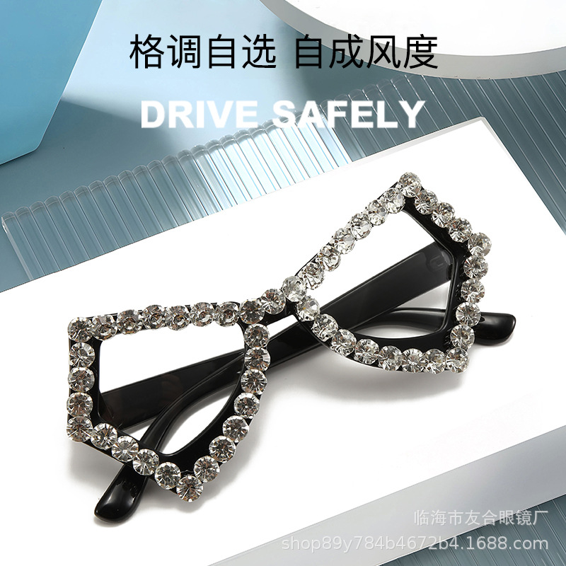 クロスボーダーの新しい手作りダイヤモンド付きサングラス、ファッショナブルでパーソナライズされたバタフライスタイルの抗UVサングラス、抗ブルーライトメガネ